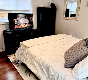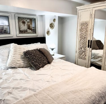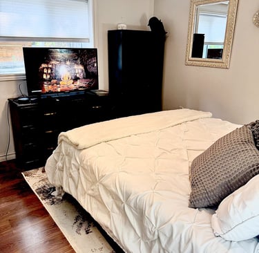 Inside, this one-bedroom space awaits, complete with all the essentials for a relaxing stay. With utilities and WiFi included, as well as your own parking spot (one spot) you'll find a comfortable queen-sized bed, a well-equipped kitchen with an induction unit and microwave/convection oven. No cooking curries or heavy spices. Plethora of close by restaurants offering curries and spicy cuisine. You’ll have a spacious bathroom featuring a luxurious walk-in shower. Plus, laundry is available for your convenience, ensuring you have everything you need for a stress-free getaway. And here's the cherry on top: your hosts, living upstairs with their friendly German Shepherd named Oscar, are on hand to make your stay truly memorable. Book now and treat yourself to the perfect blend of comfort, convenience, and warm hospitality!